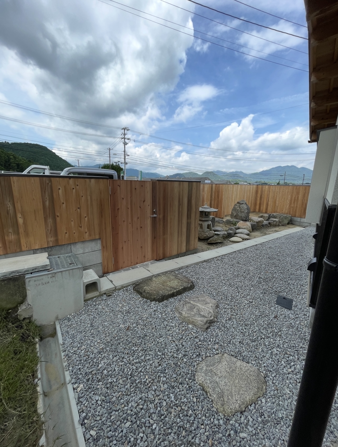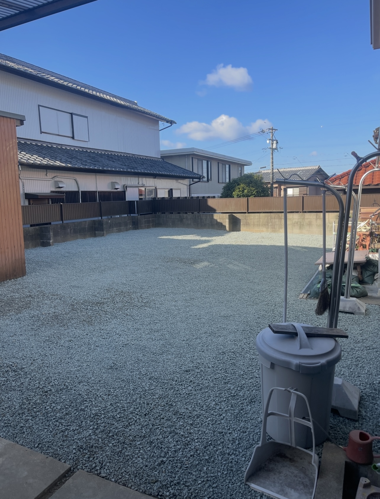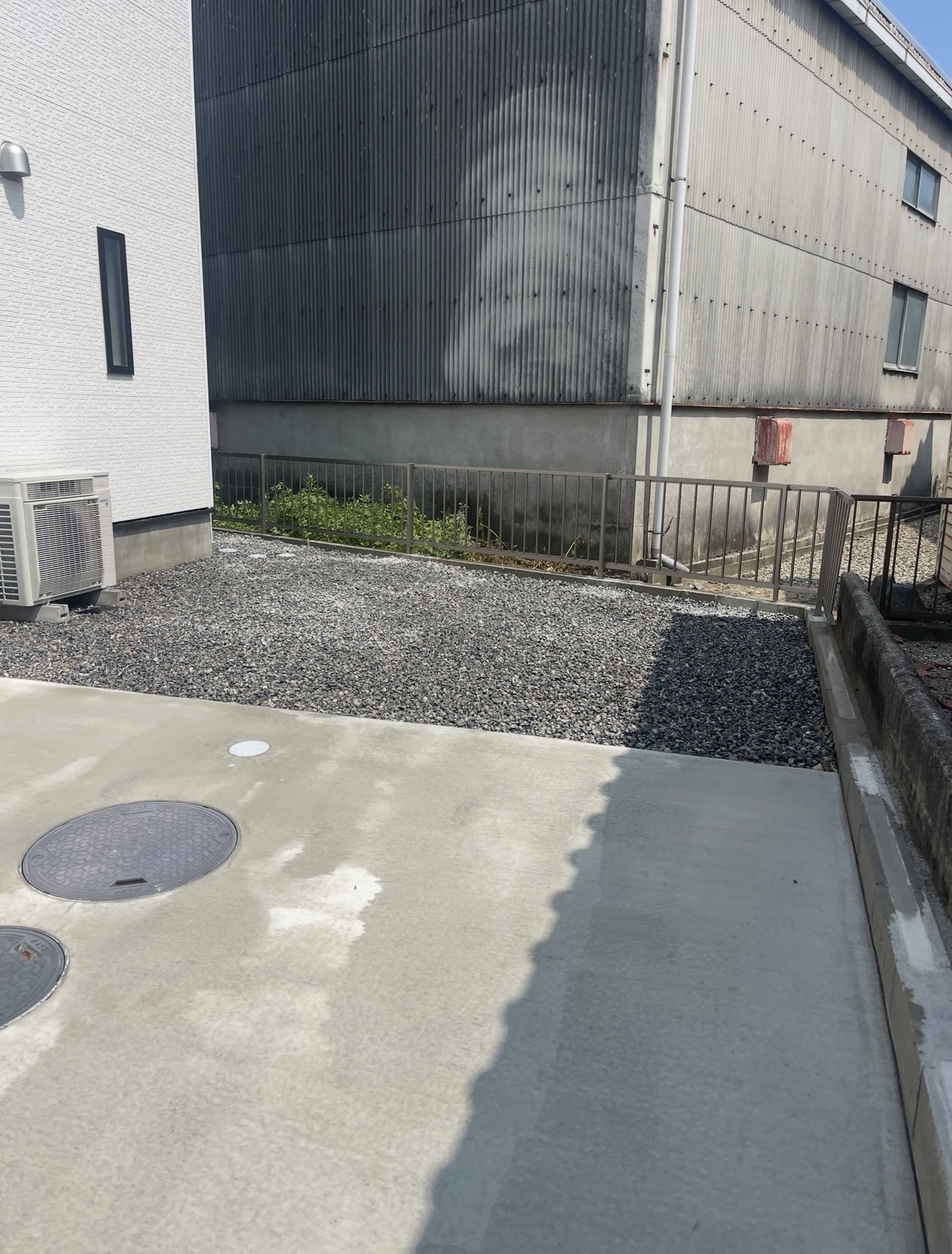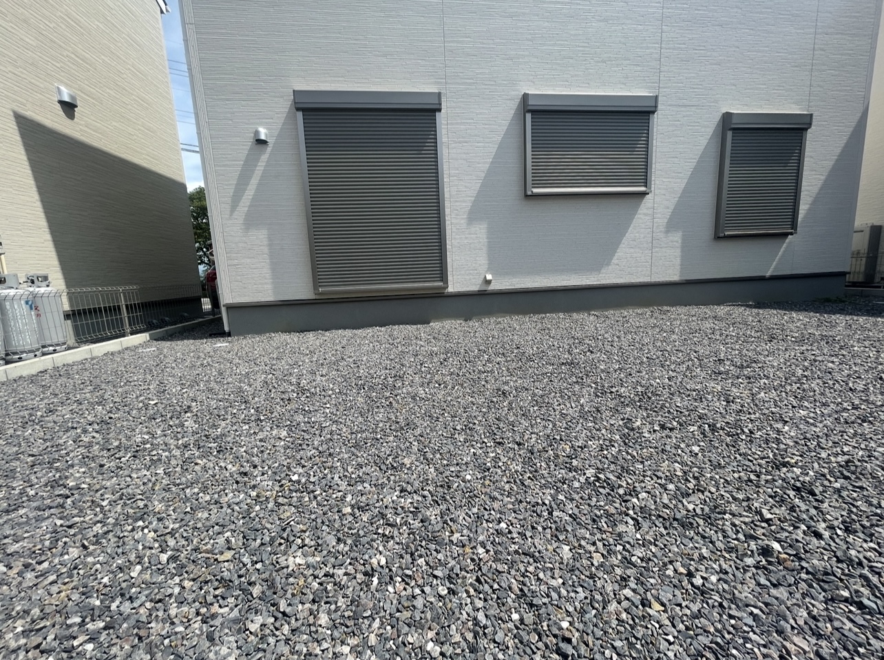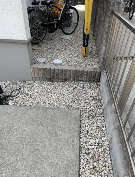 土部分に防草シート後、砂利敷き